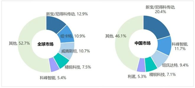 从全球角度看,据QY Research显示,2022年精密行星减速器前五的厂商分别为新宝/尼得科传动(日本)、纽卡特(德国)、威腾斯坦(德国)、精锐科技(中国台湾)、科峰智能(中国),市场份额合计占比为47.4%,而在2023年,前五厂商的市场份额合计为43.8%,集中度略有下降。