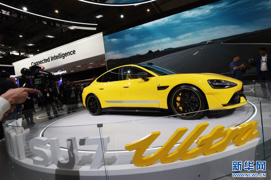3月3日,在西班牙巴塞罗那举行的2025年世界移动通信大会上,人们观看小米汽车。