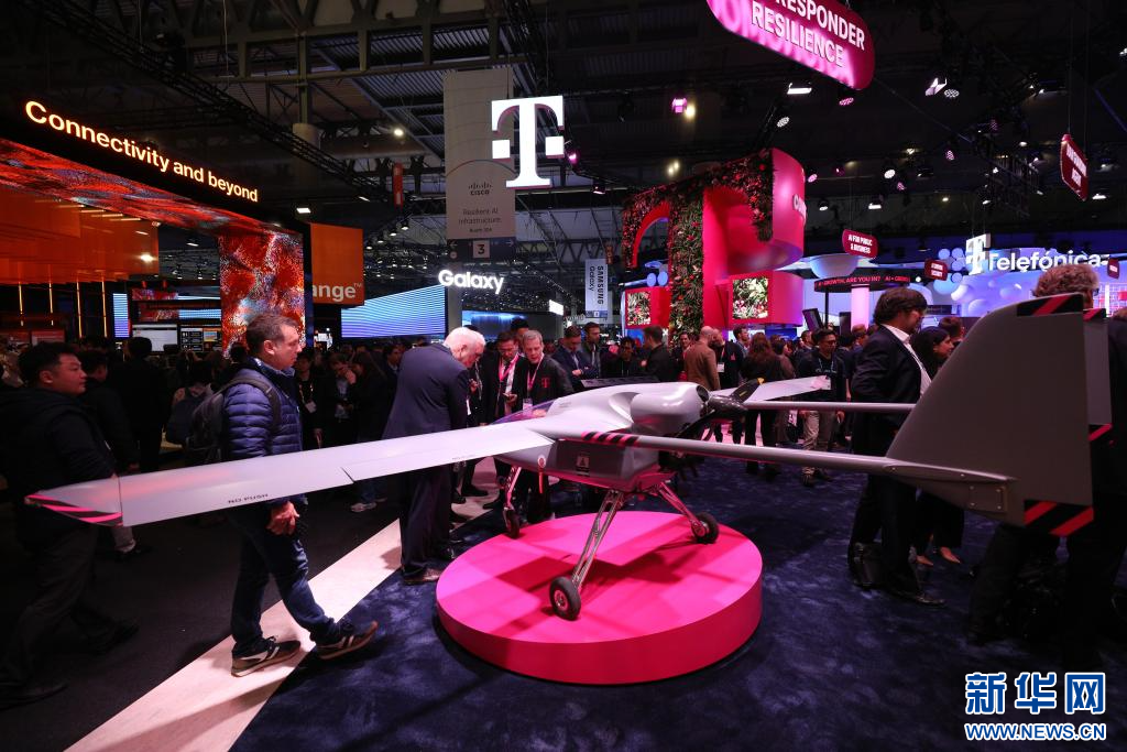 3月3日,在西班牙巴塞罗那举行的2025年世界移动通信大会上,人们观看一款无人机。